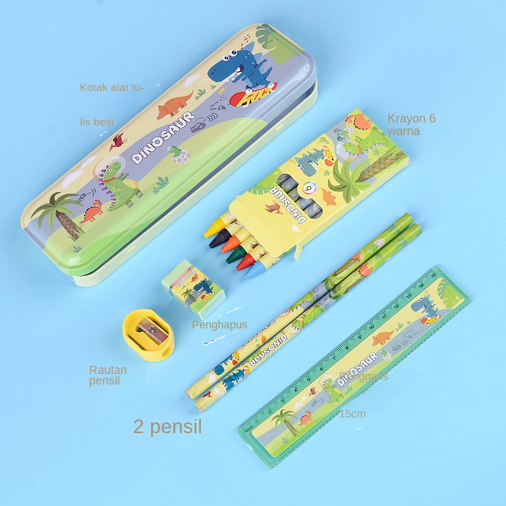 Set Alat Tulis Anak Lengkap 7in1 Karakter Kartun Lucu - Kotak Pensil Sekolah
