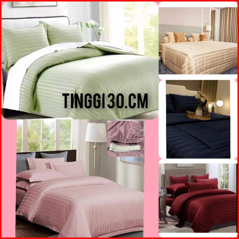 Promo Sprei Hotel Bahan Lembut Tinggi 30cm Embos Salur Motif Terbaru Ukuran 180x200 160x200 120x200
