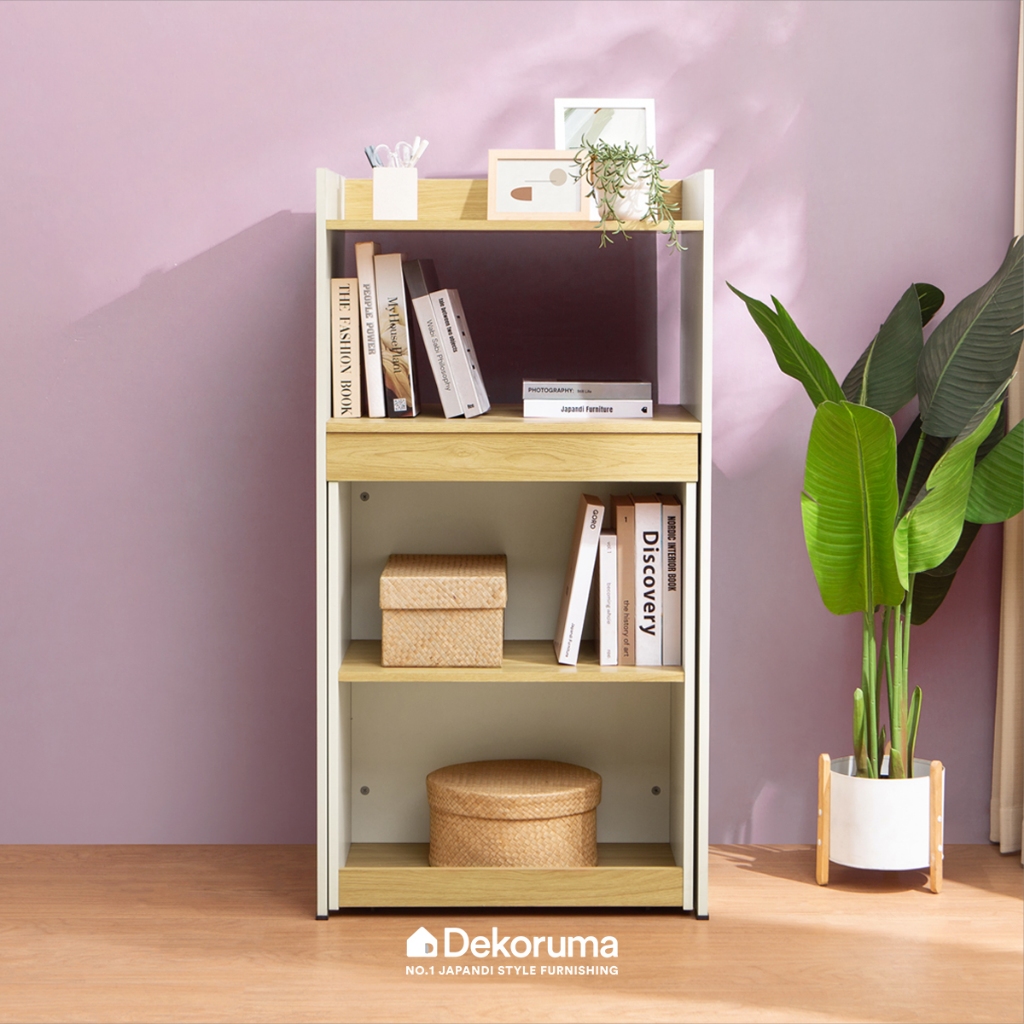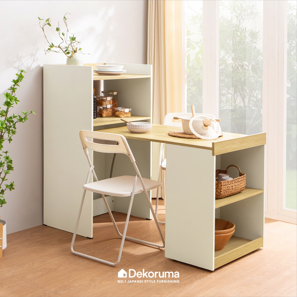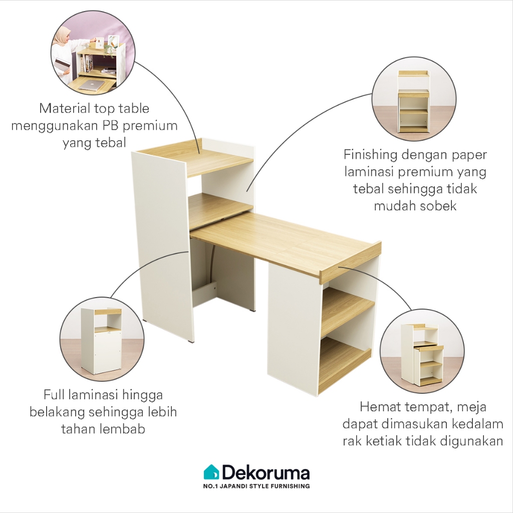 Dekoruma AOI Meja Kerja Lipat Serbaguna / Meja Belajar Kayu dengan Rak