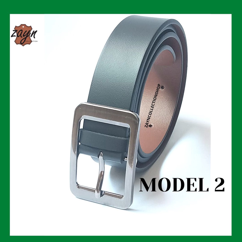 Ikat Pinggang Unisex Kepala Kotak Model Tusuk Jarum Gesper Pria Wanita Kulit Polos Hitam