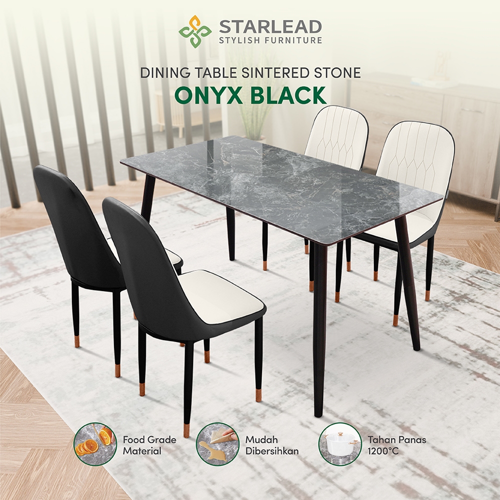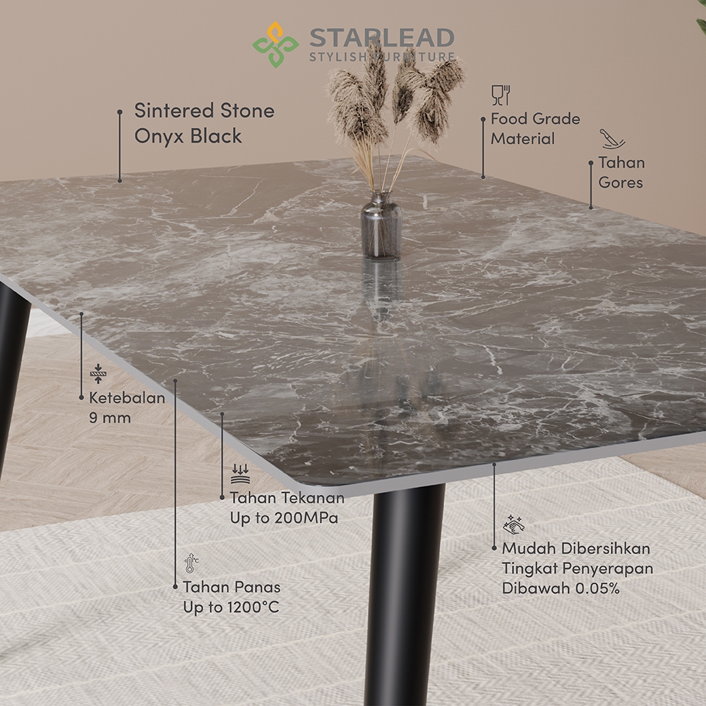 STARLEAD Set Meja Makan Sintered Stone - Onyx Black