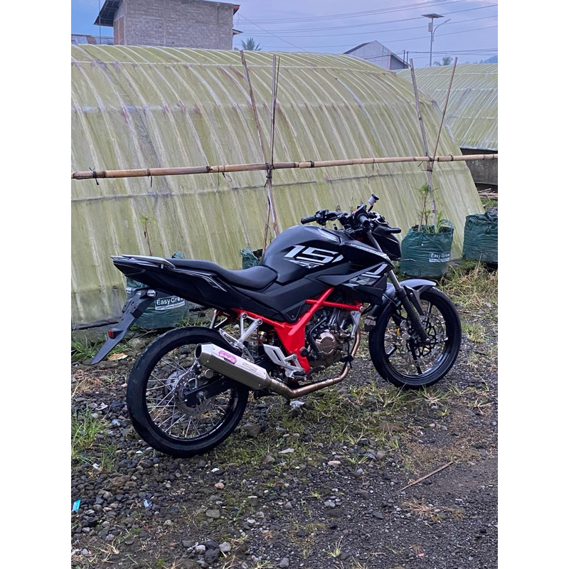 knalpot cb 150 r led new type kapsul hexagon emblem blue by Ndr exhaust