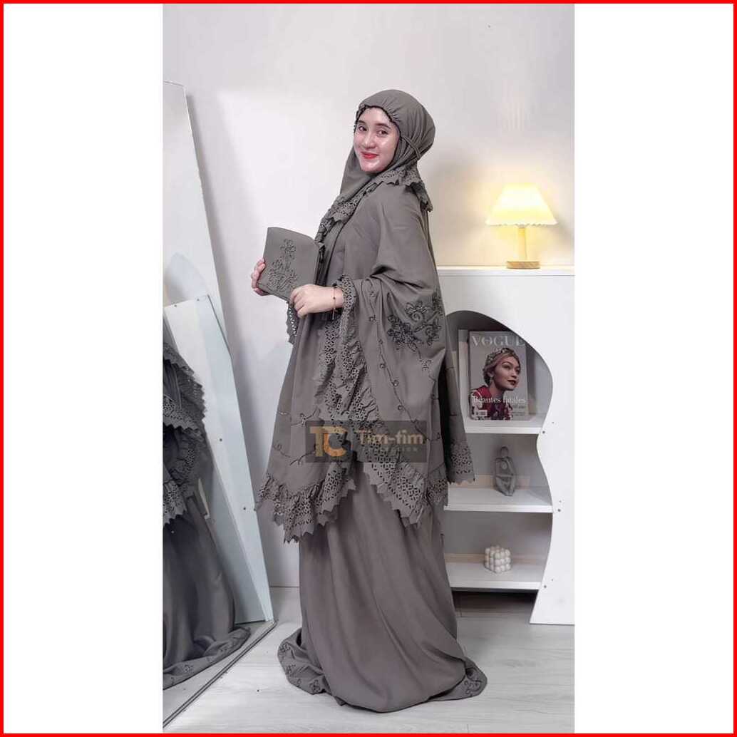 Timtim-mukena Dewasa Lasercut Bordir Corneli Azzura 2 In 1