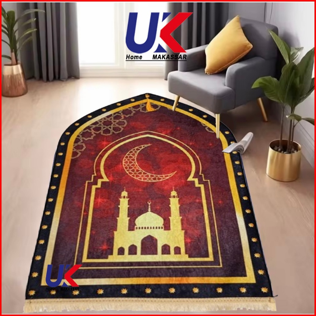 Sajadah Turki Glossy Rumbai Oleh-oleh Haji Lembut Alas Anti Selip 70 X 110