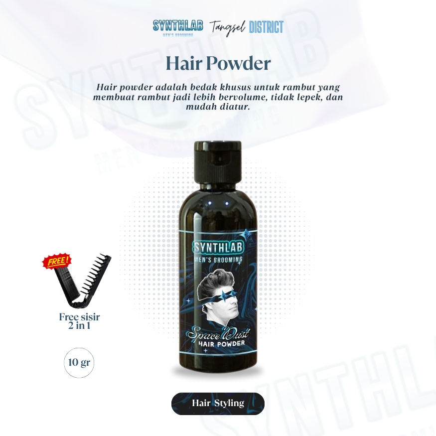 Synthlab Bedak Styling Rambut Pria 10gr - Natural Hair Powder Membuat Bervolume & Anti Lepek Dengan Sisir Gratis 2in1 Po