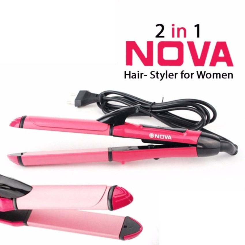 Catok Nova NHC 2009 Catokan 2 In 1 Pelurus dan Keriting Rambut Pink + Free Nova N 1290 Hair Dryer Pengering Rambut