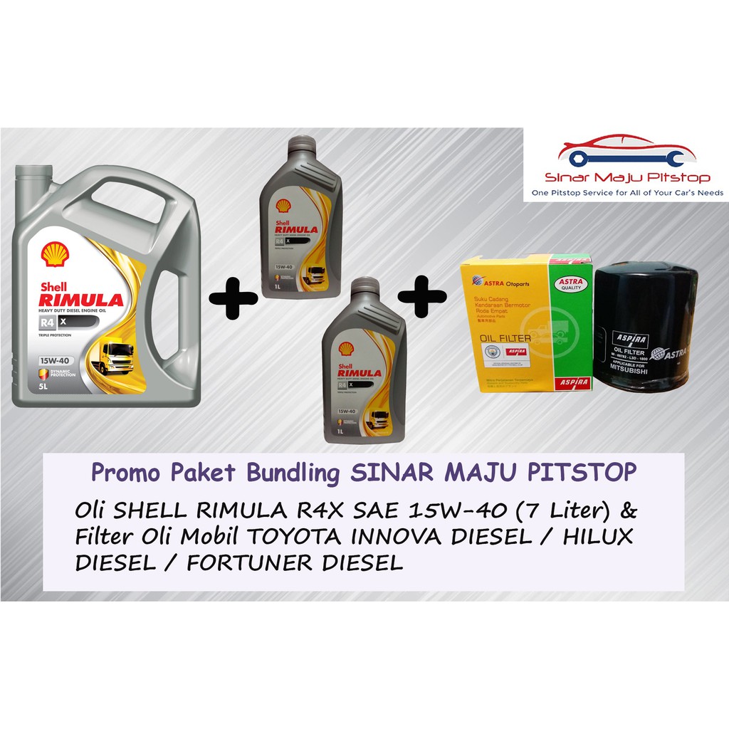Paket Bundling Oli Mesin Mobil Diesel Shell Rimula R4X 15W-40 - 7 Liter + Filter Oli Toyota Fortuner & Fortuner Vrz & Ve