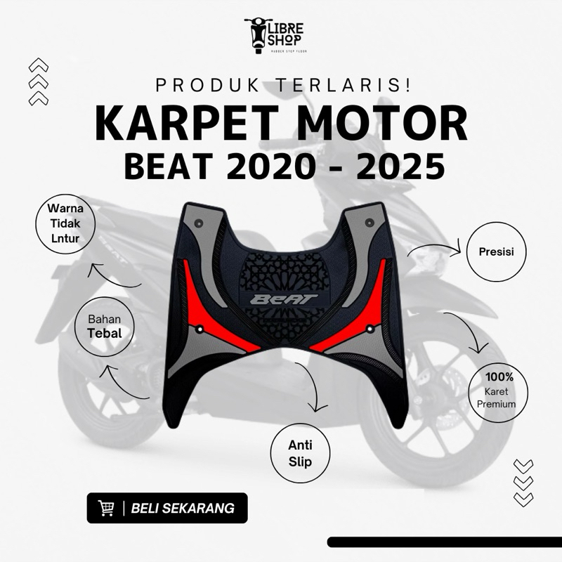 Karpet Motor Honda Beat 2020 sampai 2025 Pijakan Alas Kaki Bahan Karet Premium Warna tidak luntur Antir Slip Nyaman