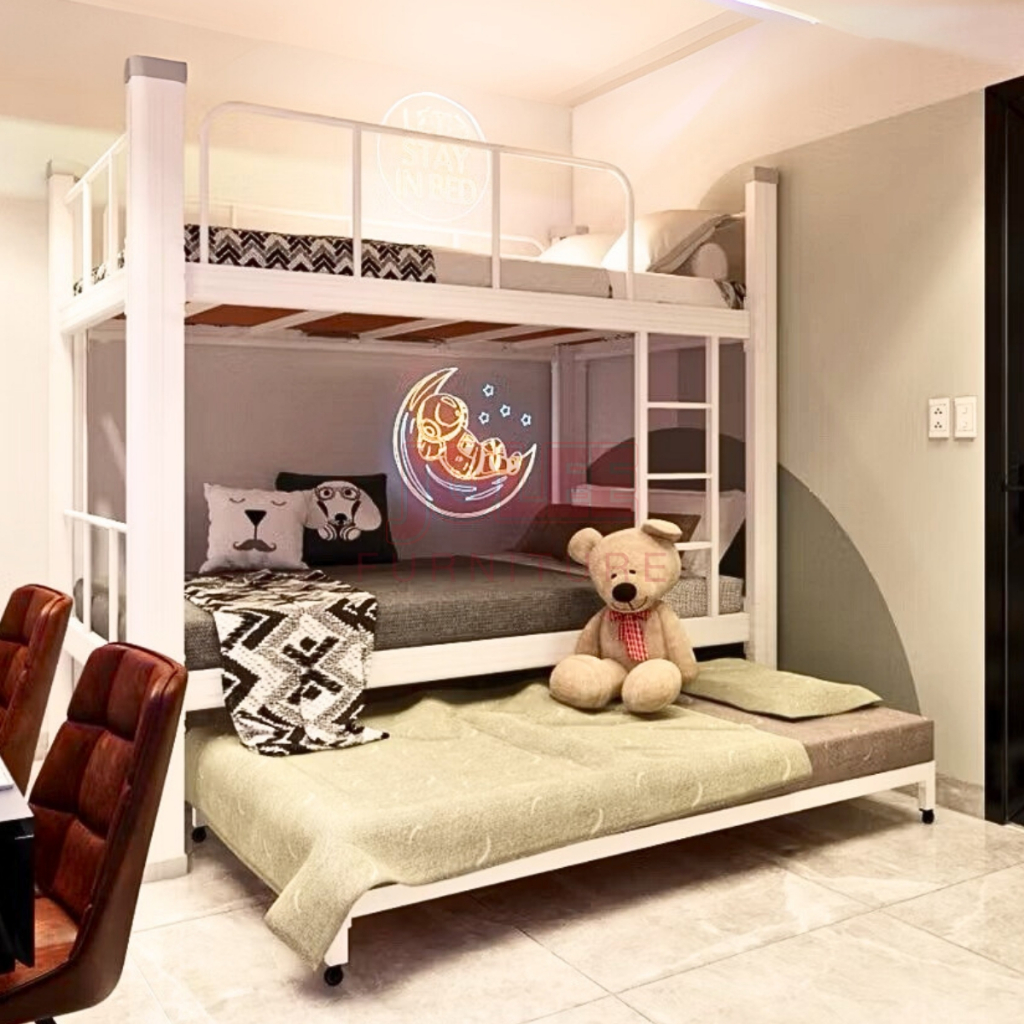 JF-Tempat Tidur Susun Besi untuk Rumah, Tempat Tidur Anak Asrama Perguruan Tinggi, Meja Kabinet Besi
