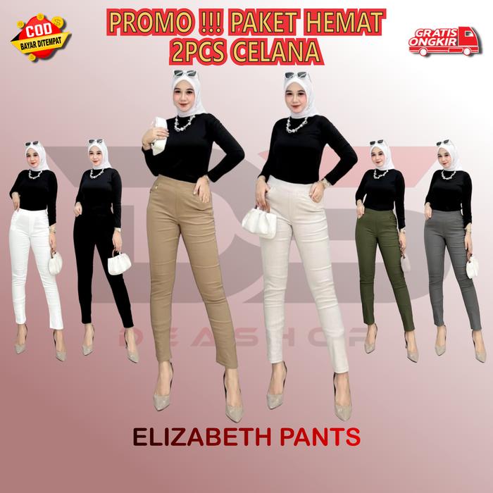 Paket 2Pcs Celana Panjang Wanita Korea Office Lady Elizabeth Pants Chino Melar Pensil Mid Waist Yaman Dipakai Kantoran A