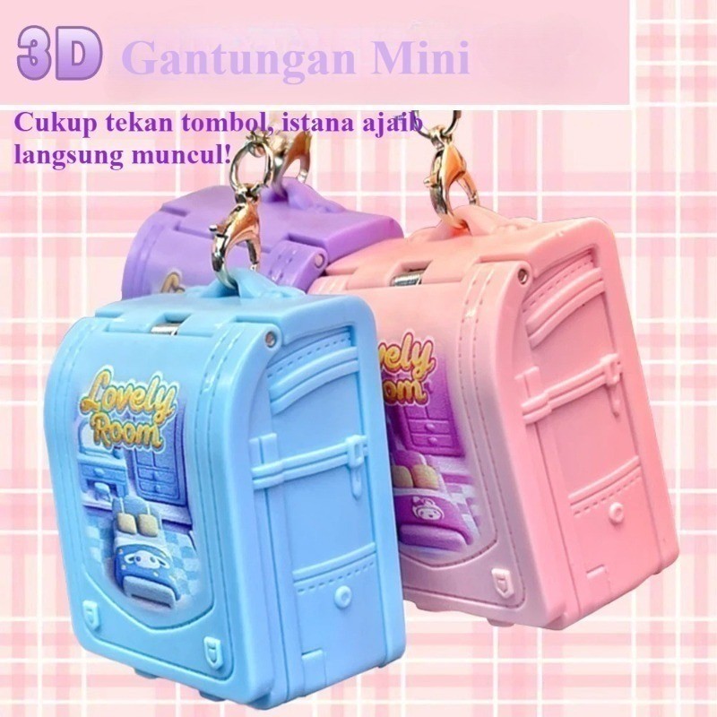 Gantungan Kunci Lipat Pop-Up 3D /Tas Sekolah Lipat Tiga Dimensi 3D/Gantungan Kunci /Hadiah Liontin Kreatif Dekompresi