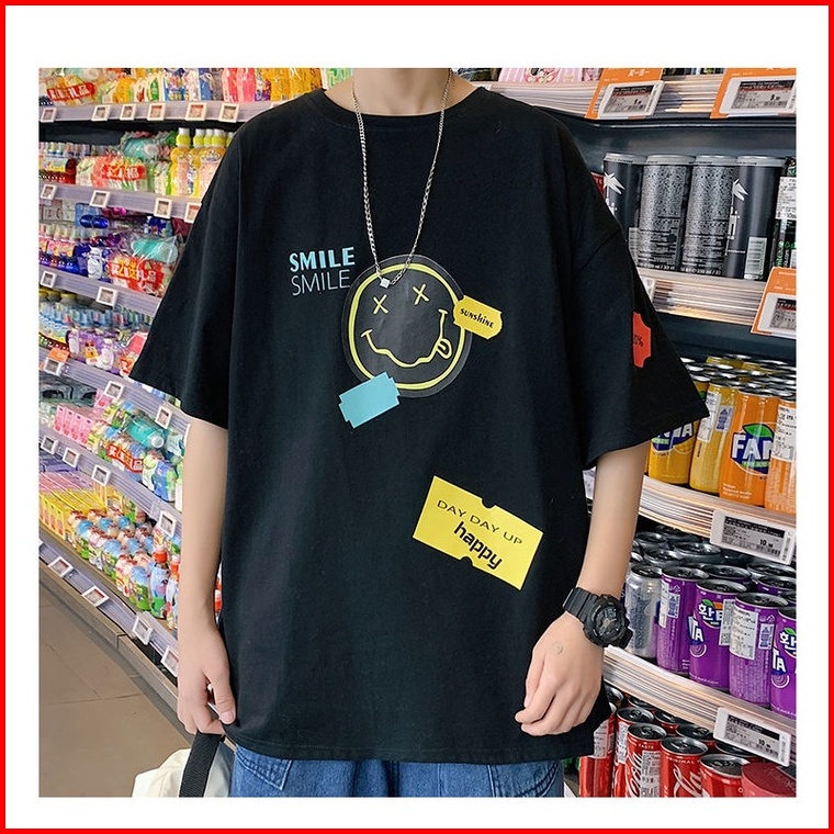 Ssmy Sm02 Smile Desain Sablon Kaos Oversize Pria Fashion Women Tshirt Katun Premium