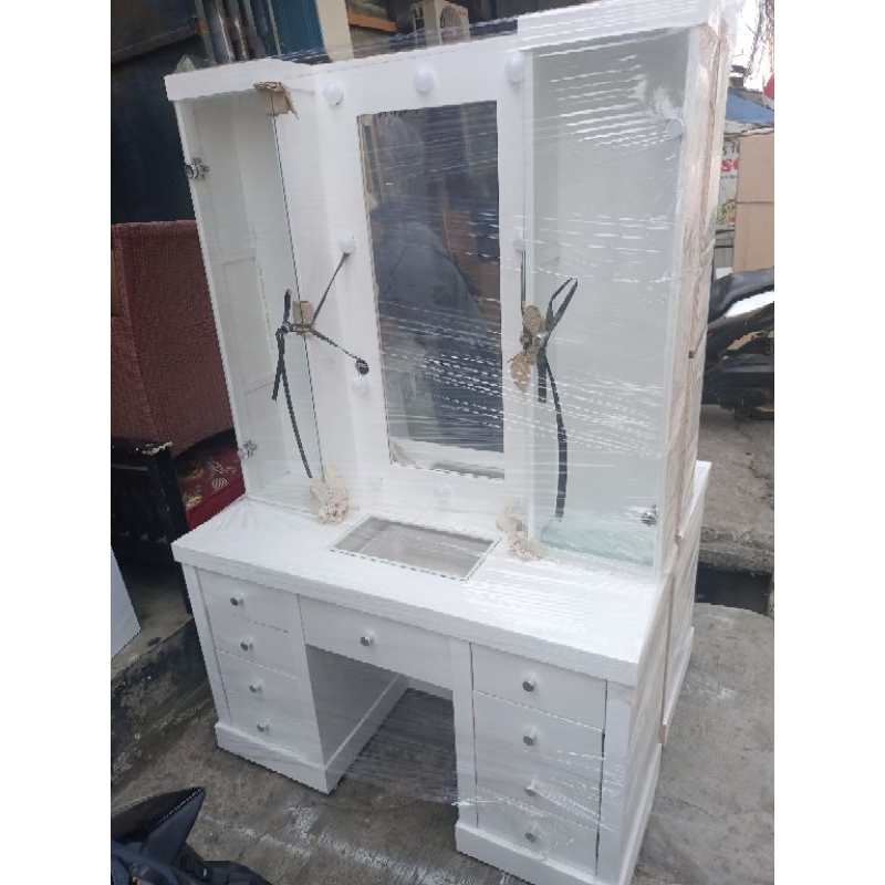 meja rias. tolet. lemari kaca cermin. lampu laci cermin pintu kaca kayu