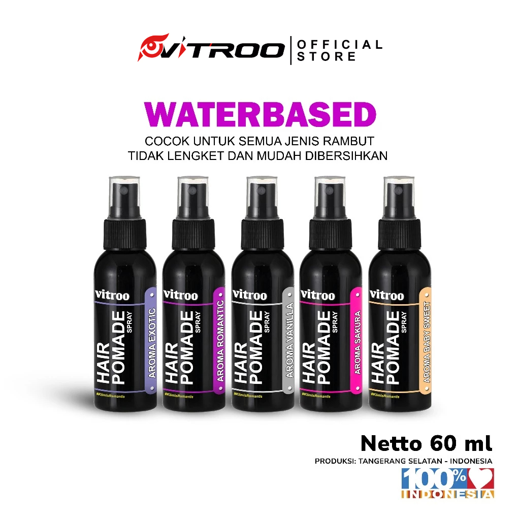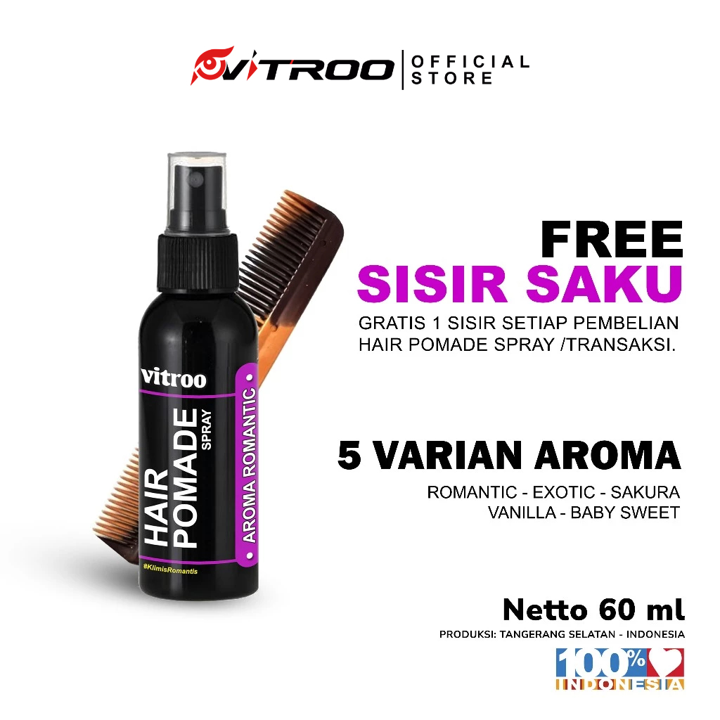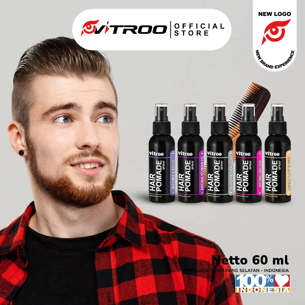 Vitroo Hair Pomade Spray Pomed Rambut Semprot Waterbase Minyak Rambut Pria Hair Styling Natural FREE Sisir Saku