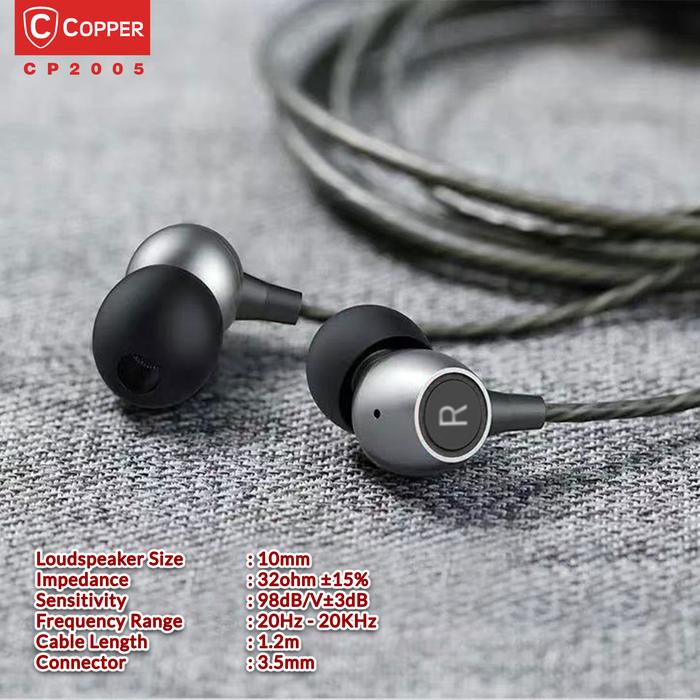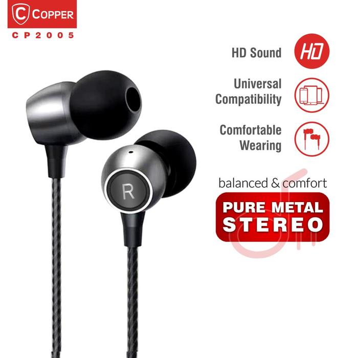 Copper Pure Metal Stereo Cp2005 Series Earphone / Headset / Handsfree - Hitam