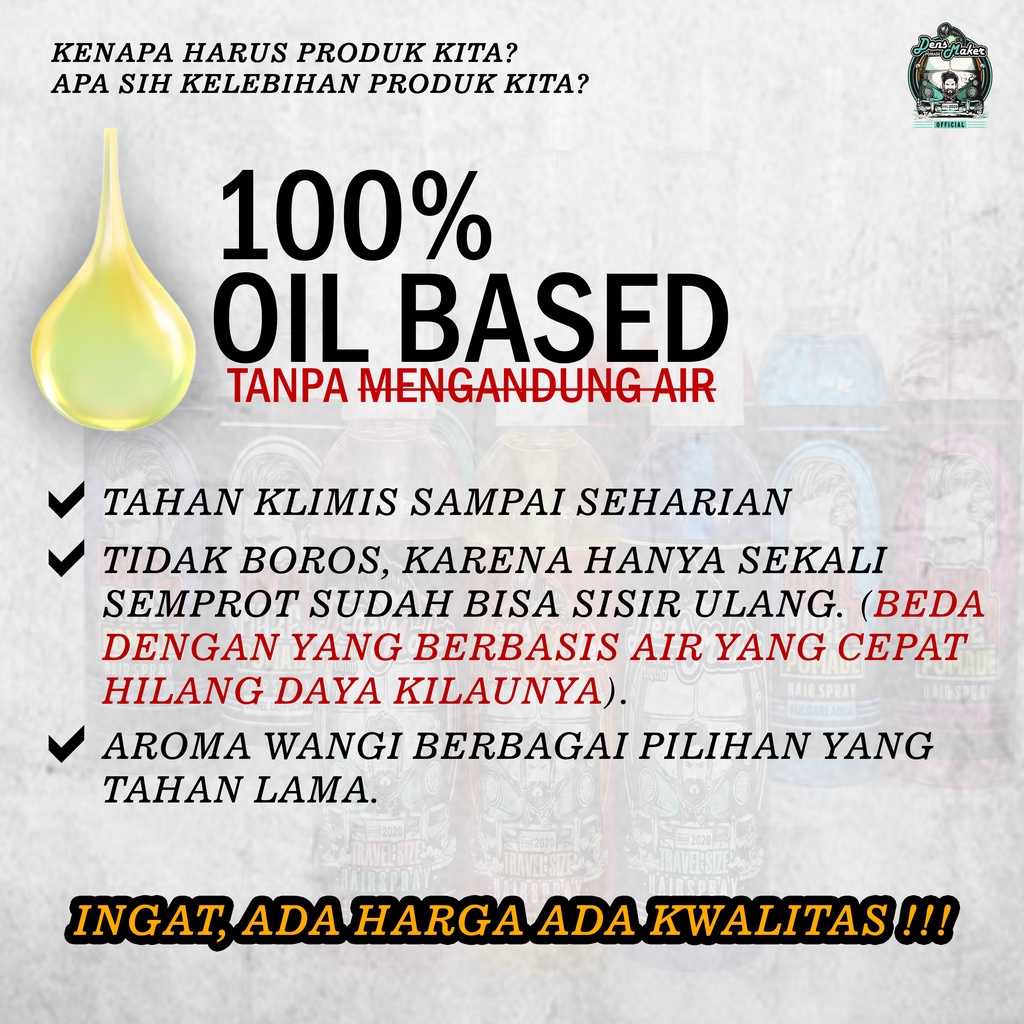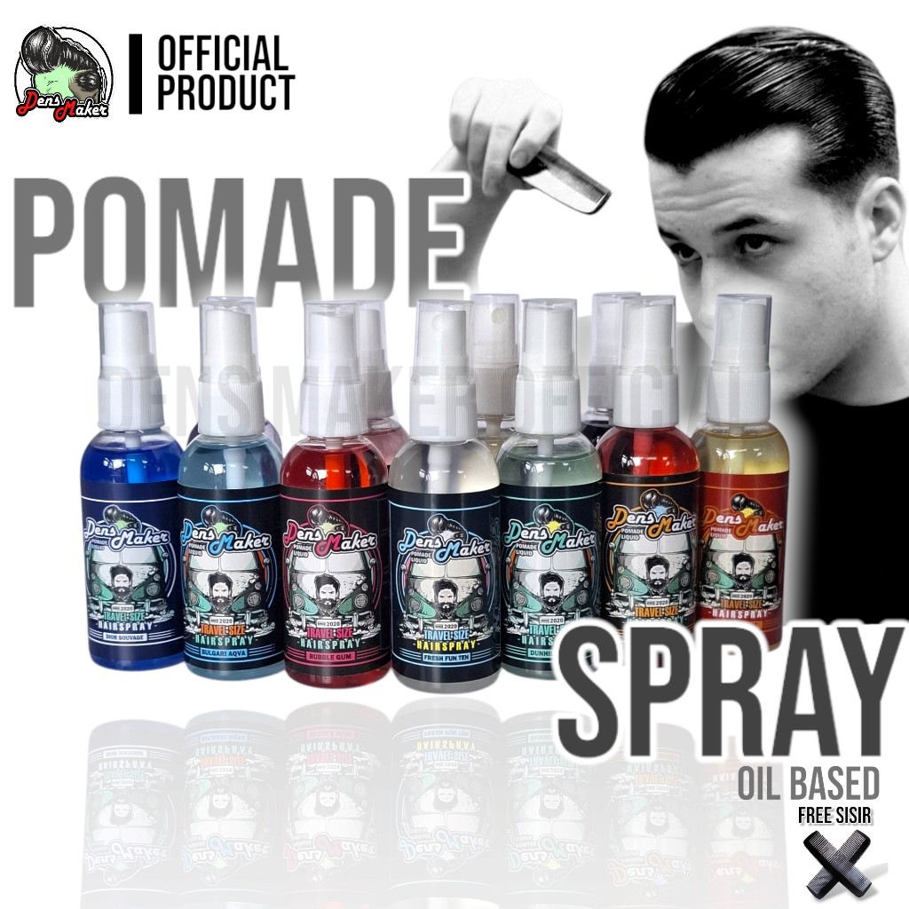 Pomade Spray Rambut Pria 60ml Dens Maker – Styling Kilat, Wangi Tahan Lama, Hair Vitamin, Free Sisir