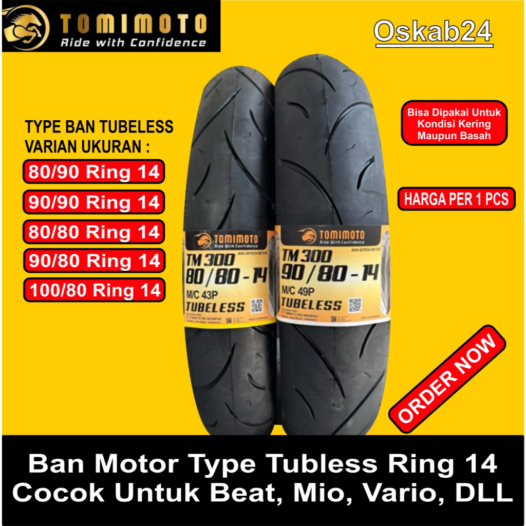 Obral Promo TOMIMOTO TM300 Tubles Ban Motor Matic Beat Vario Mio Dll Ring 14 Baru Dan Original