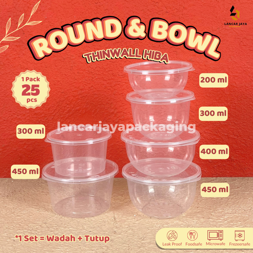 HIBA Thinwall Round Bowl Kotak Makan Plastik Mangkok Container Wadah Makanan 200 300 400 450 ml Murah Gratis Ongkir Gara