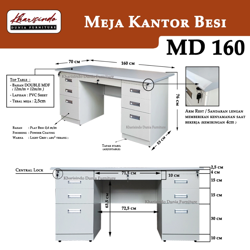 Meja Kantor - Meja Guru - Meja Staff - Meja Kerja / MD 120 - MD 160 / uk 120cm - 160cm / Bahan Besi / Best seller