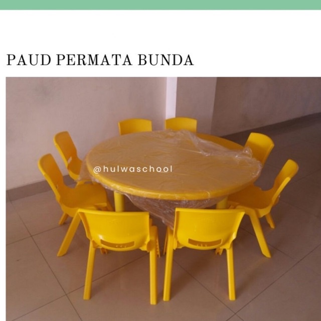 MEJA ANAK BULAT BENTUK BULAT UKURAN BESAR DIAMETER 110 cm kaki besi dan 8 KURSI