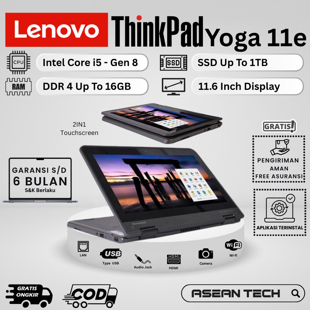 Lenovo Thinkpad Yoga 11e Core i5 Gen 8 8GB SSD 256GB Touchscreen Laptop Second Bergaransi