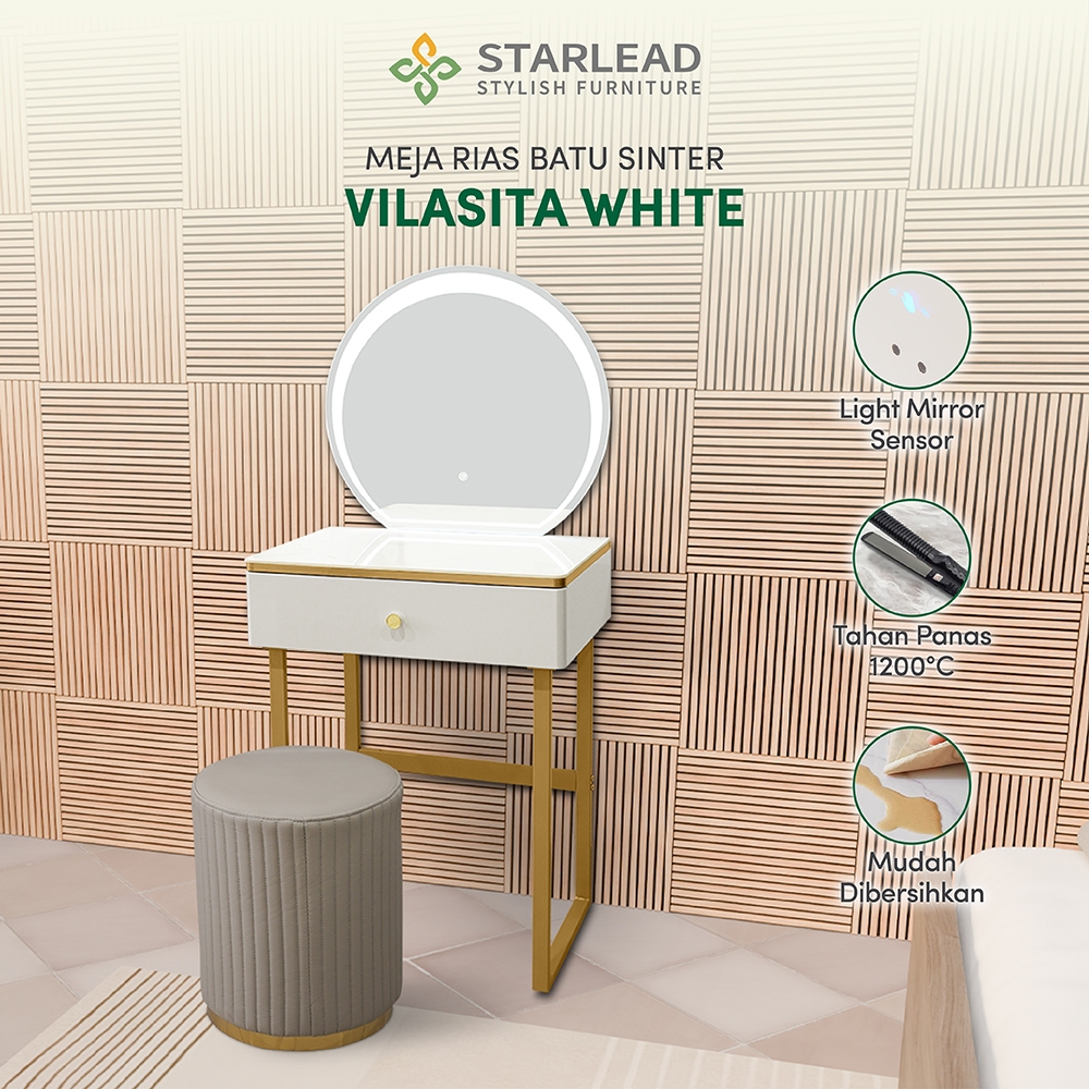 STARLEAD Meja Rias Sintered Stone dengan Kursi - Vilasita White