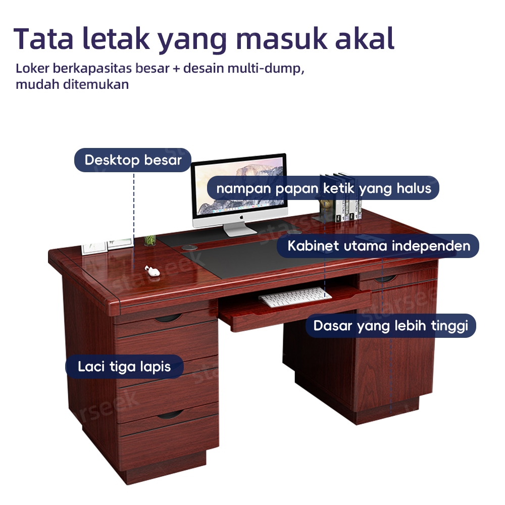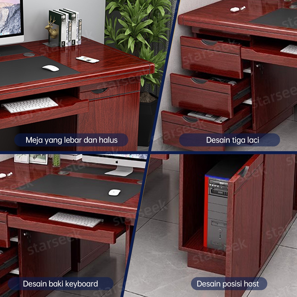STARSEEK Meja Tunggal Modern/Meja Komputer Desktop/Dengan Kunci / Laci 3 Lapis /1 Istirahat Keyboard