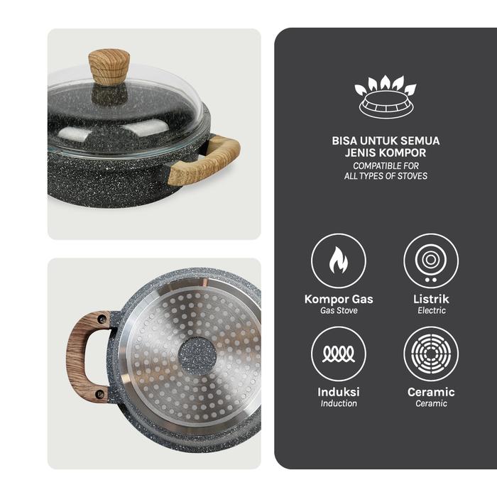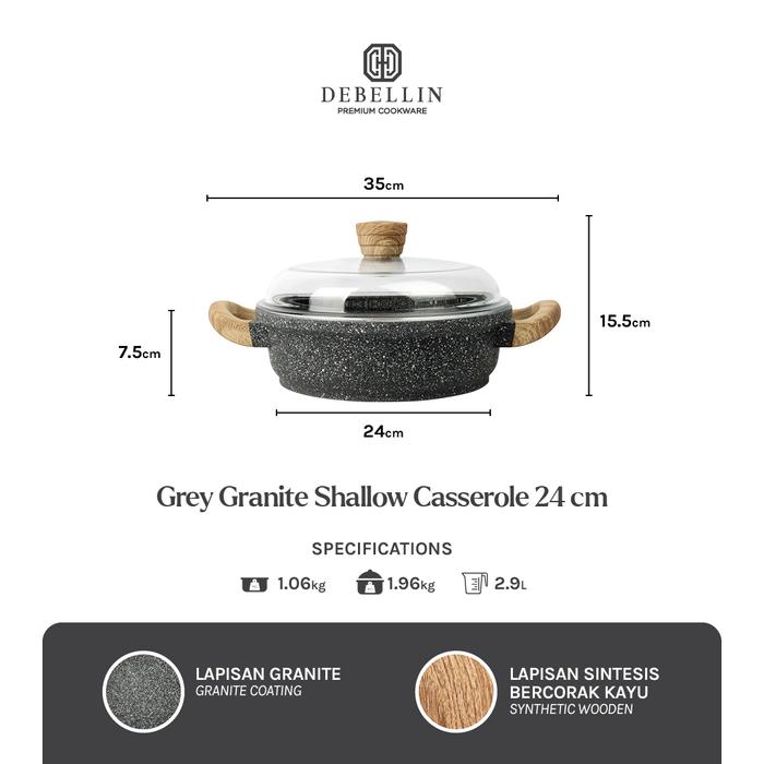 Debellin Grey Granite Shallow Casserole 24Cm - Panci Premium Anti Lengket - Abu-Abu