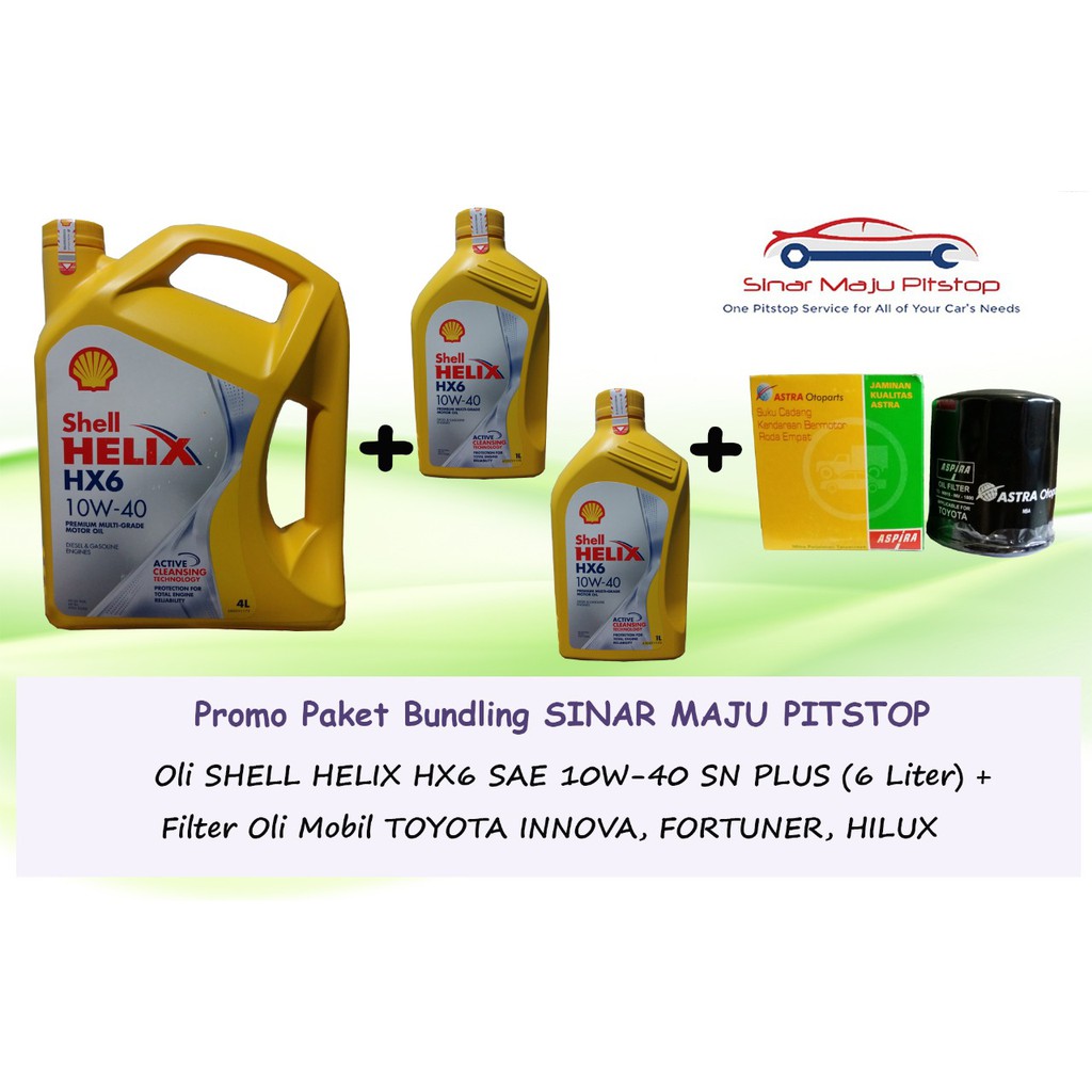 Paket Bundling Oli Shell Helix Hx6 10W-40 Sn Plus 6 Liter & Filter Oli Toyota Innova Original