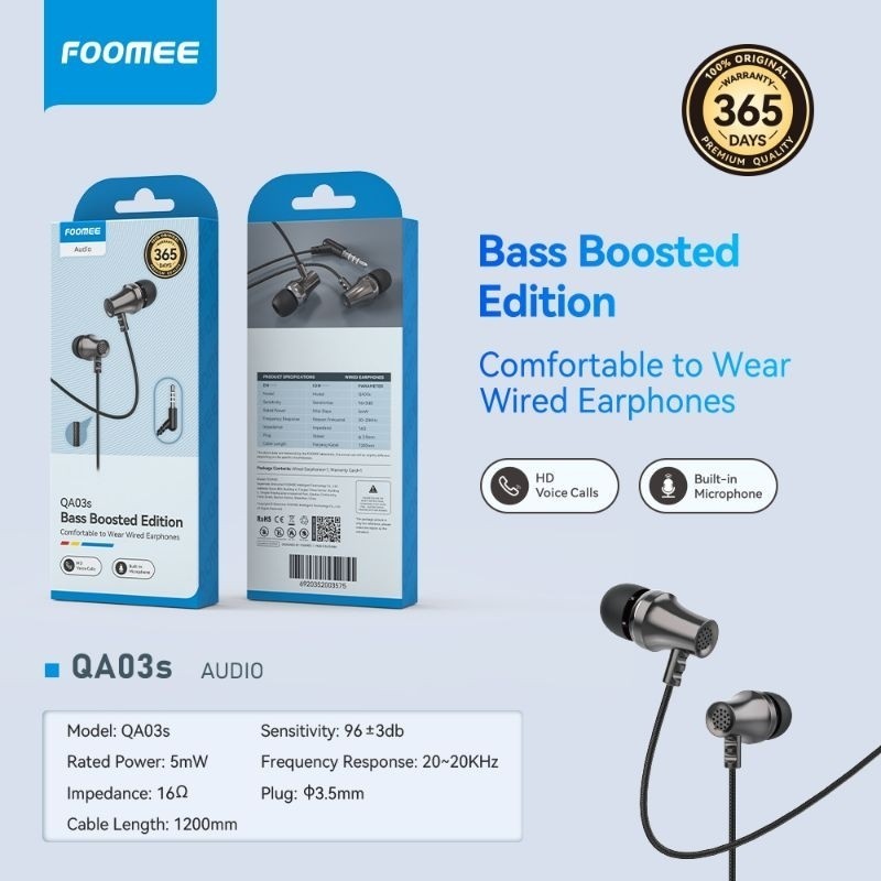 [PROMO] QA03S WIRED EARPHONE INEAR BASS BOOSTED EDITIONHEADSET KARET KABEL 120CM