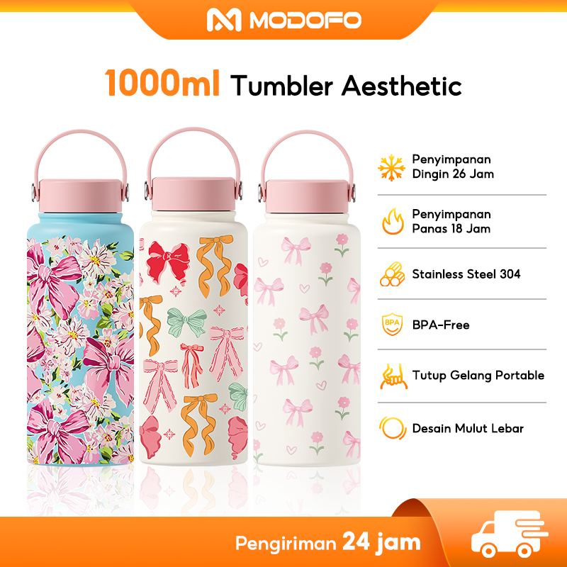MODOFO 1000ml Lucu Tumbler Stainless Tahan Panas Dingin 24 Jam Botol Minum Aesthetic Tumblr Aesthetic