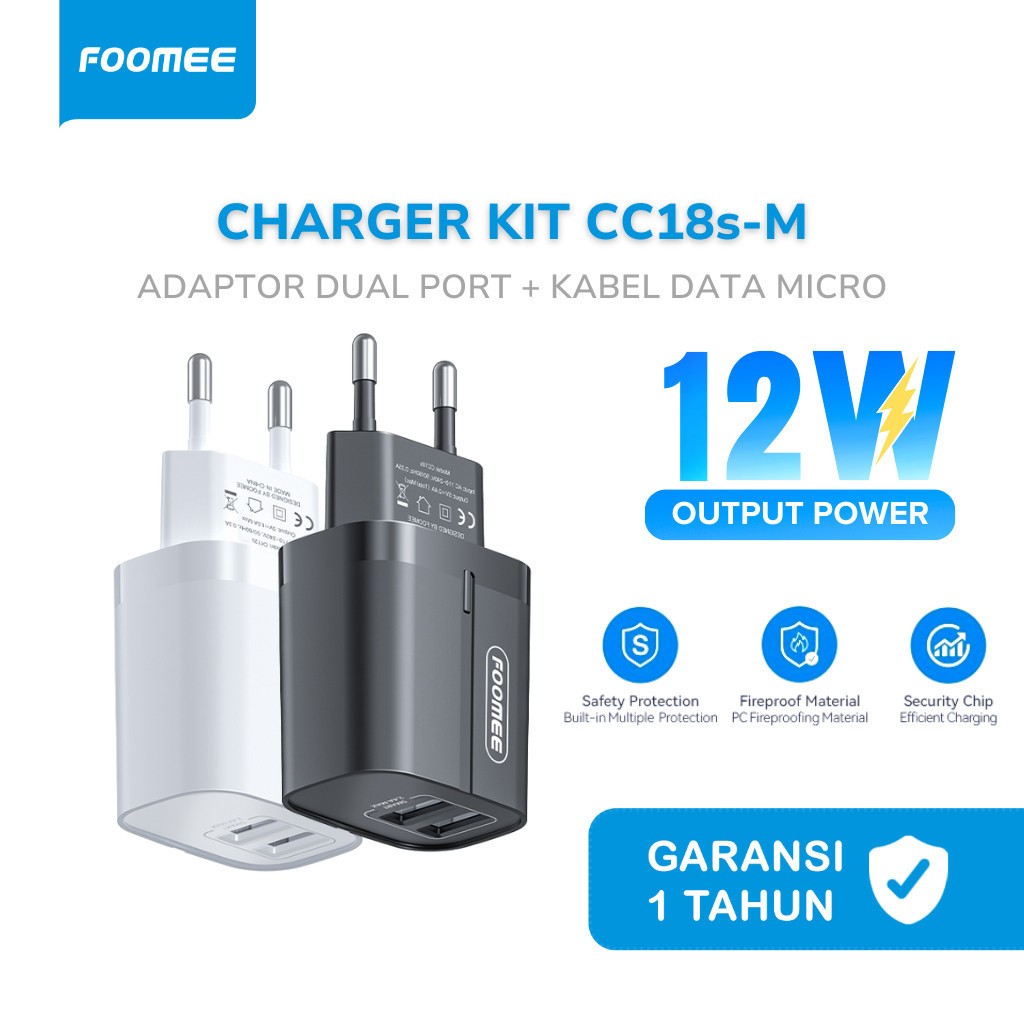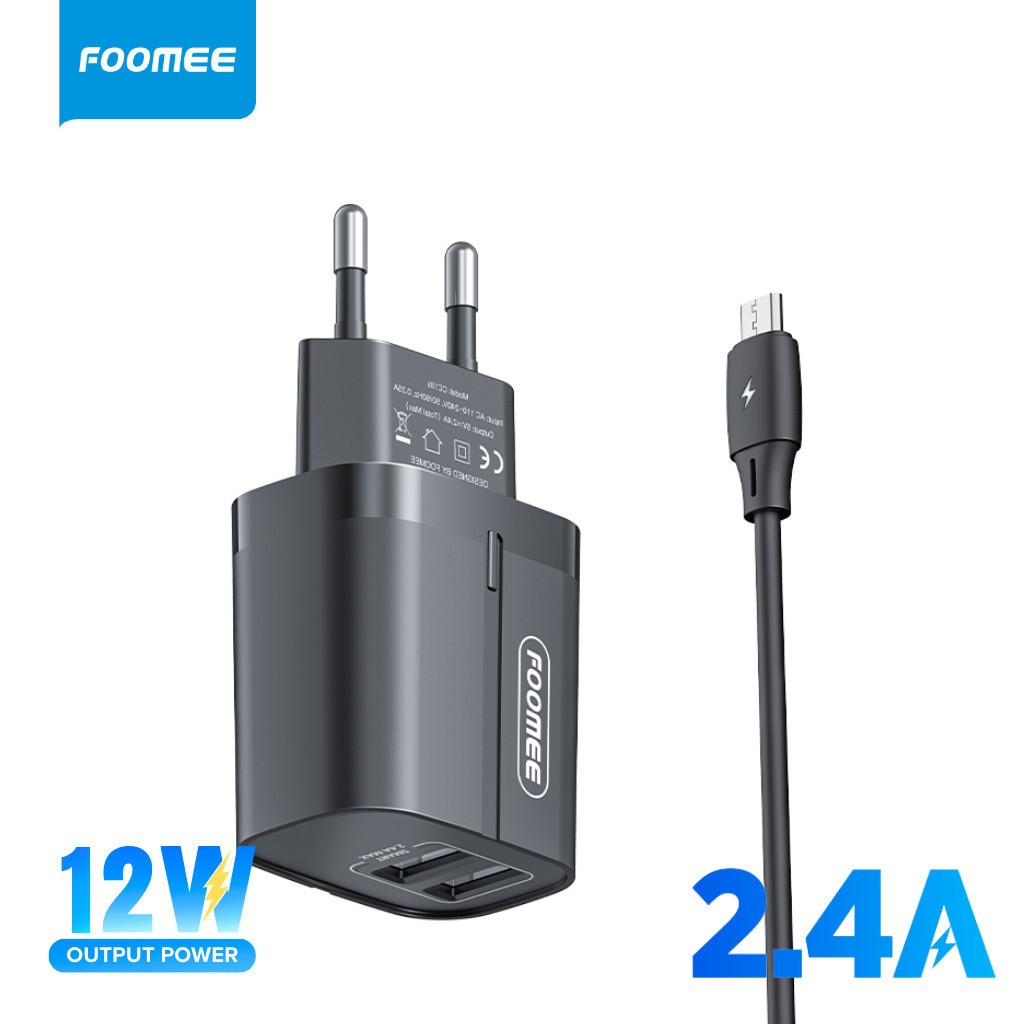 [PROMO] Foomee CC18sM Charger Kit 2 Port USB 24A + Kabel Data Micro 1M