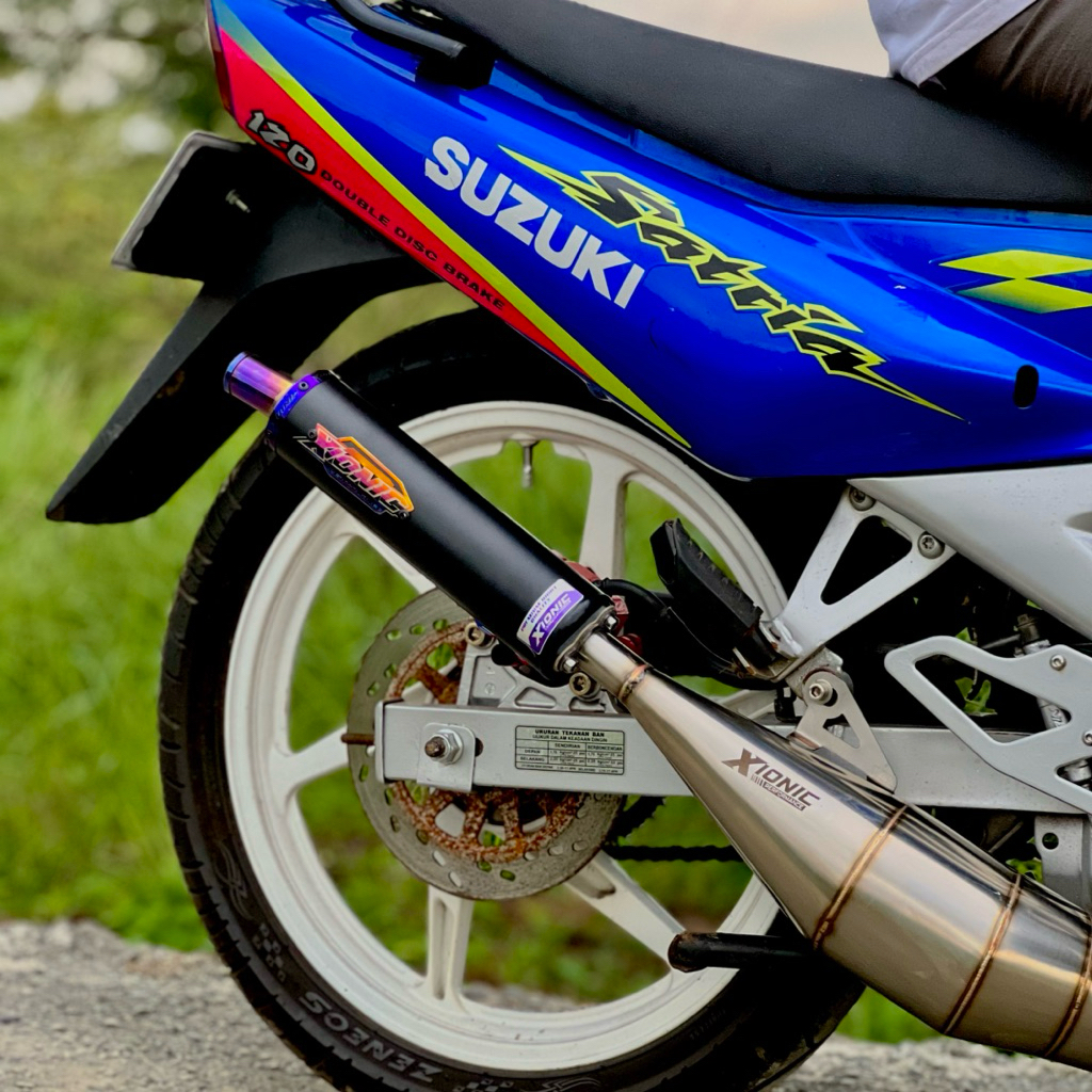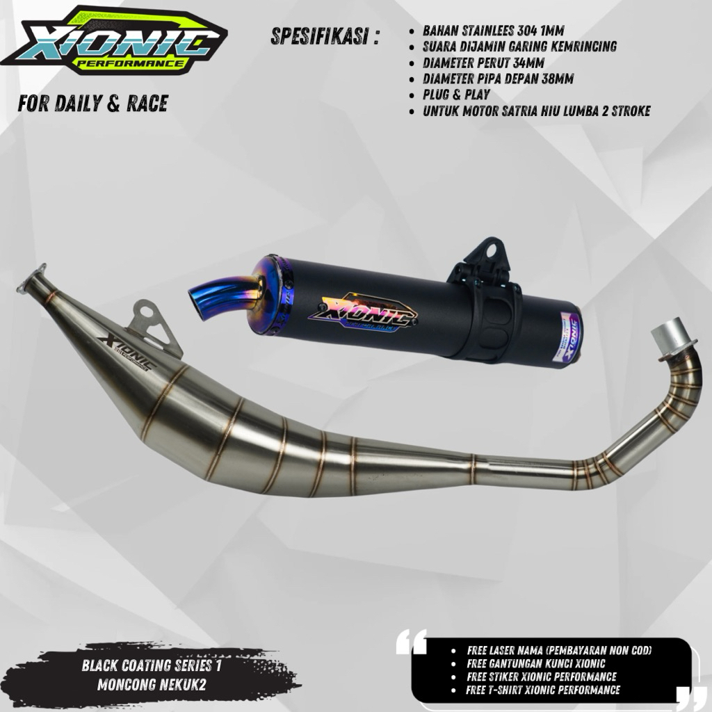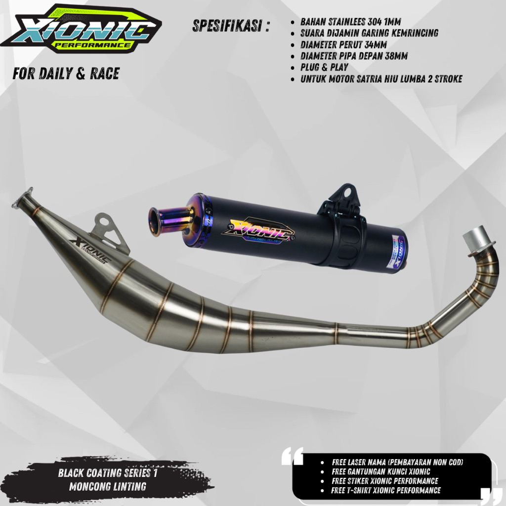 Knalpot Satria Hiu Lumba Xionic Performance Black Powder Coating Series 1 Stainlees Steel 304 Model samping Standart (PNP)