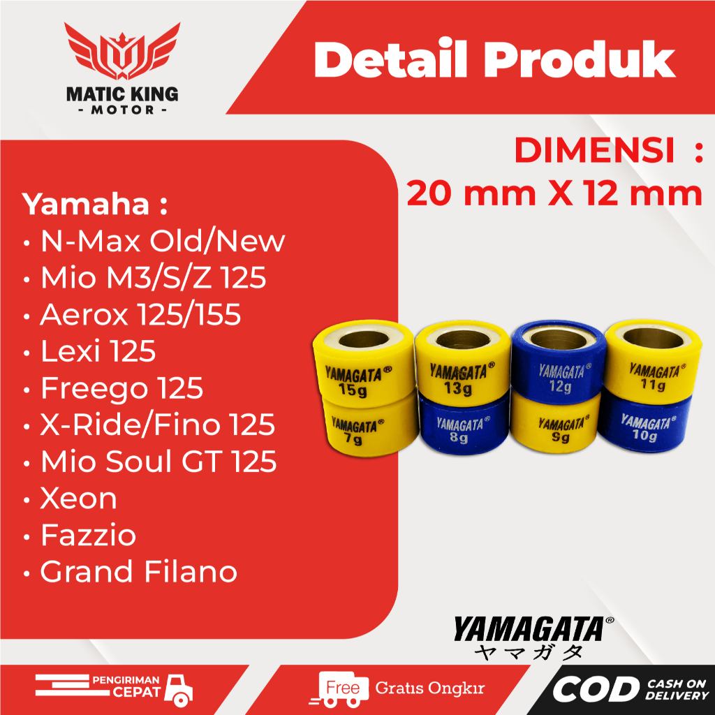 Roller Nmax Lexi Aerox MioM3/Z/125/GT125 Xeon Fino Fi Yamagata Racing 8 gr sd 13 gr jual satuan (1 pc)
