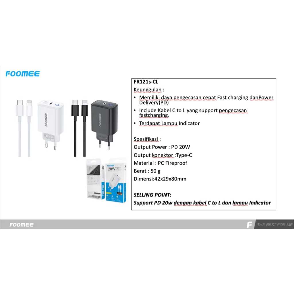 [PROMO] 1 Set Charger Foomee CA10sMCC28CC18sMFR121s MicroTypeCIphonec to cc to L 100 PERSEN Original Fast Charging