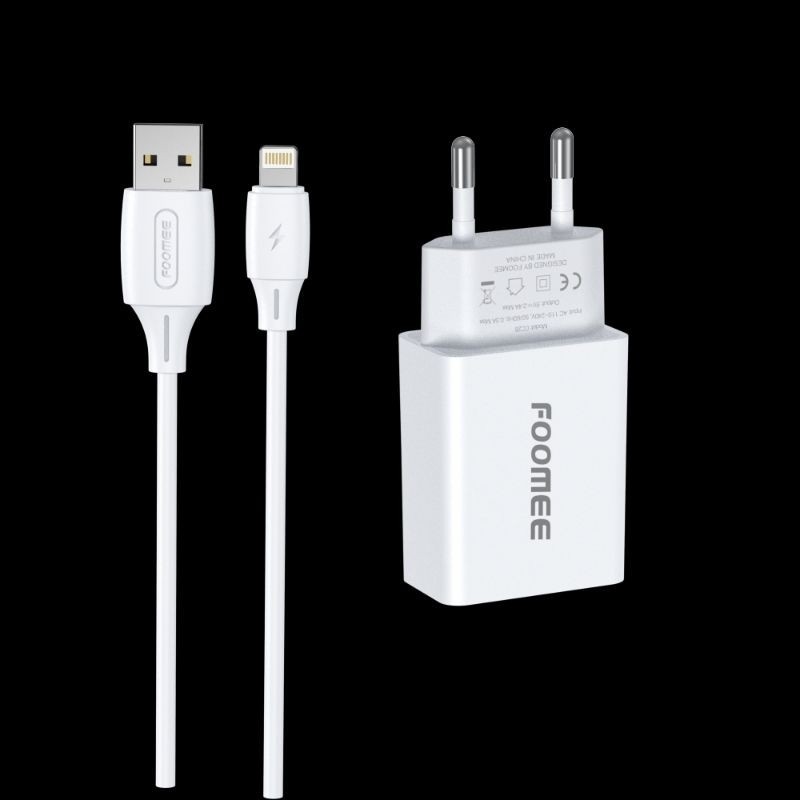 [PROMO] Foomee CC28L CHARGER KABEL + ADAPTOR USB TO LIGHTNING Kabel Data kabel Charger Cable CHARGER KIT 1 PORT USB 24A + KABEL DATA LIGHTNINGIPHONE 1M