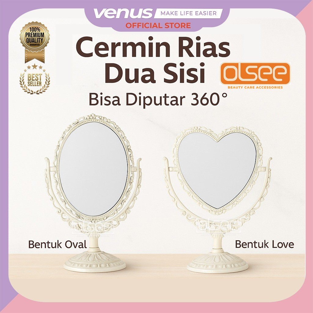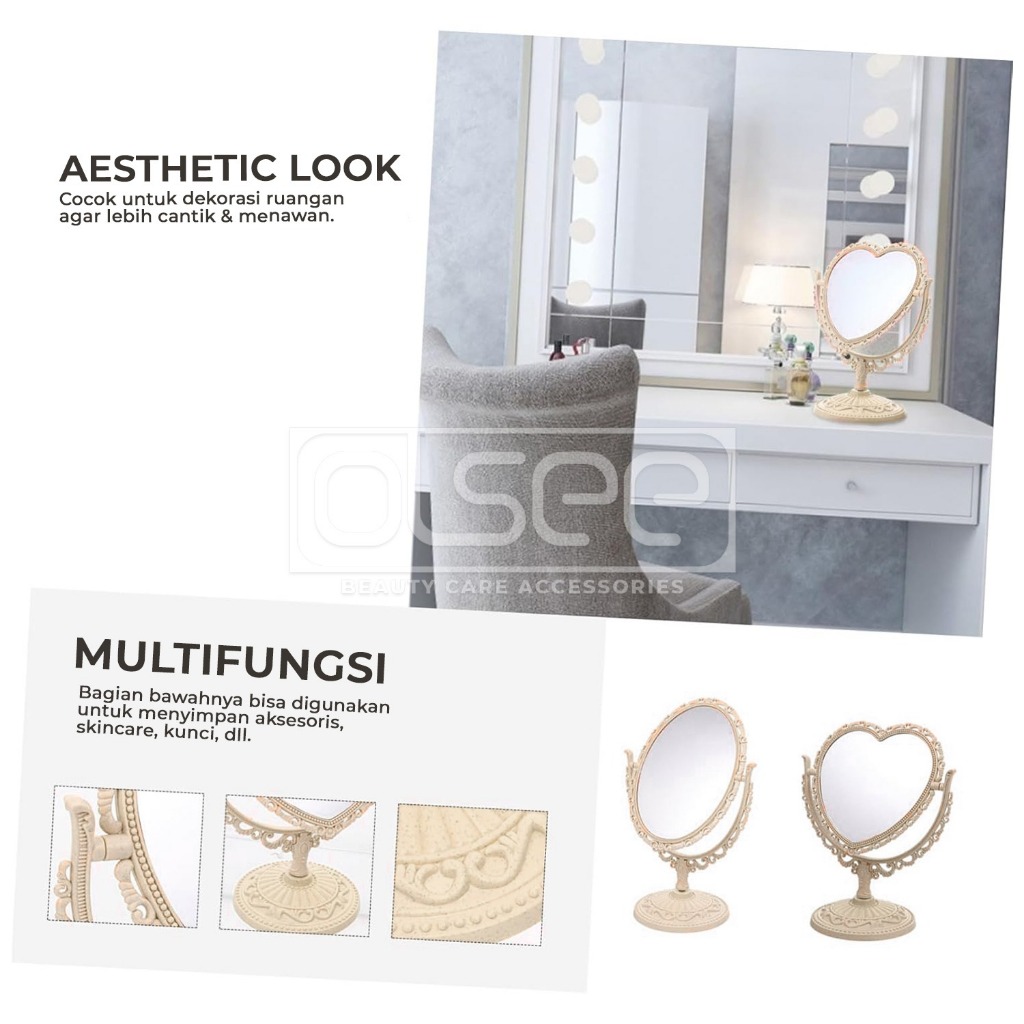 OLSEE – Cermin Meja Rias Aesthetic Estetik Vintage Korea Kaca Dua Sisi Bisa Diputar 360° Cermin Make Up Dekor Meja Cantik S629