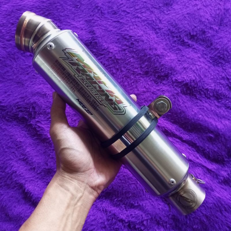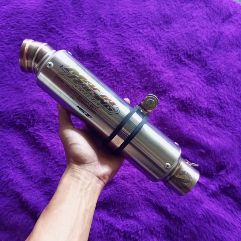 knalpot original MAFIA racing exhaust PNP satria Fu karbu wajib UB full set, silincer model gp slim 3 inc panjang 25 cm saringan full