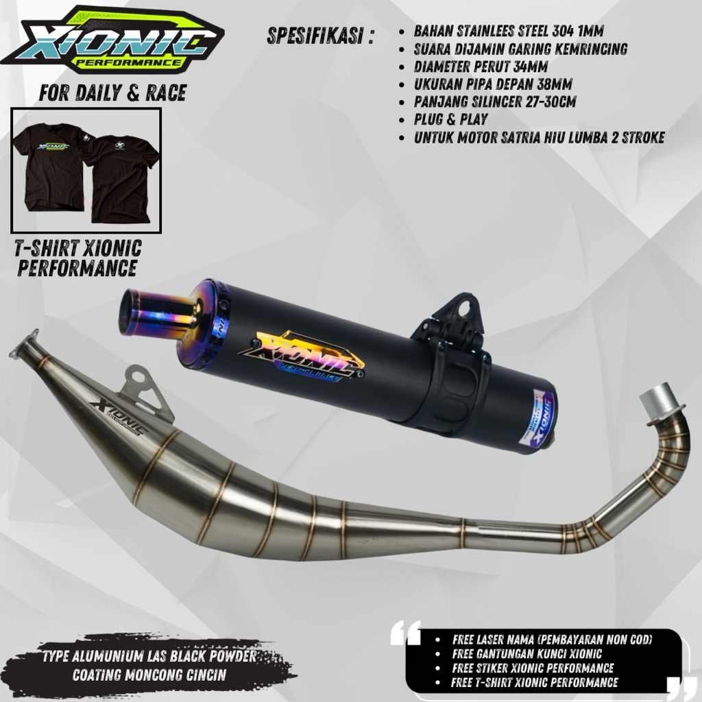 Knalpot Satria Hiu Lumba Xionic Performance Type X-04 V2 Black Powder Coating Model samping Standart (PNP)