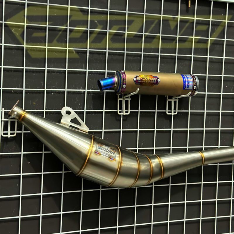 KNALPOT SATRIA HIU/LUMBA STANDART SAMPING ORIGINAL BOTUNA RACING STAINLES TYPE BLASTING TITANIUM