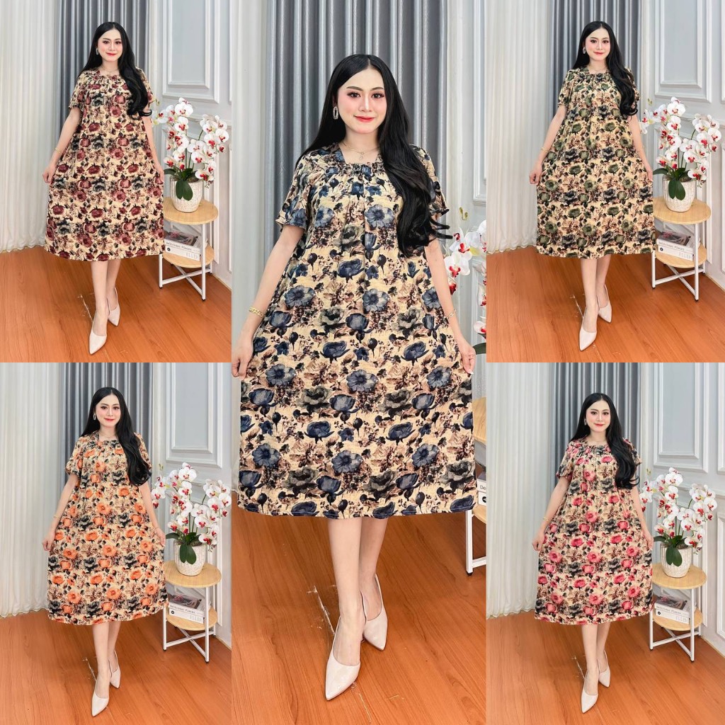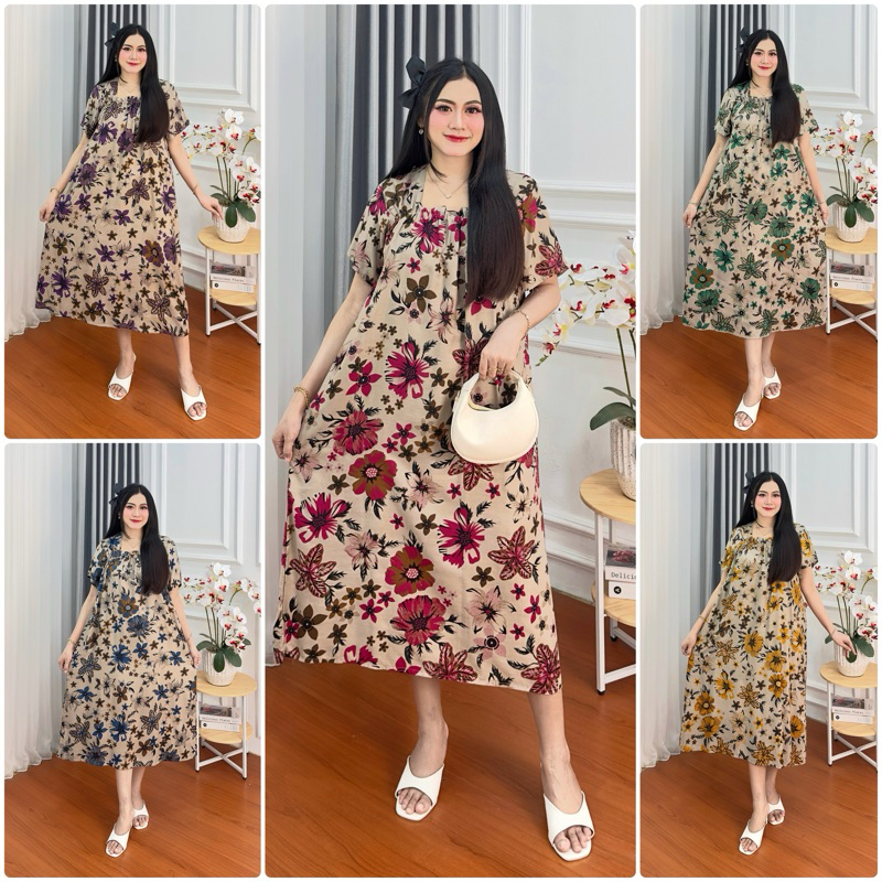 Daster super Jumbo kekinian terbaru Busui Bumil kerut dada Size LD 120 cm Fuji Pendek bahan Rayon Lengan Pendek Wanita Kekinian Bumil Karet Kerut Dada