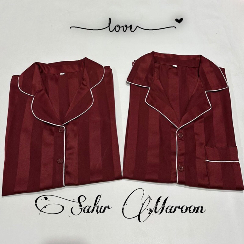 Paket piyama CP couple salur garis kotak satin sutra wanita dan pria lengan pendek celana panjang