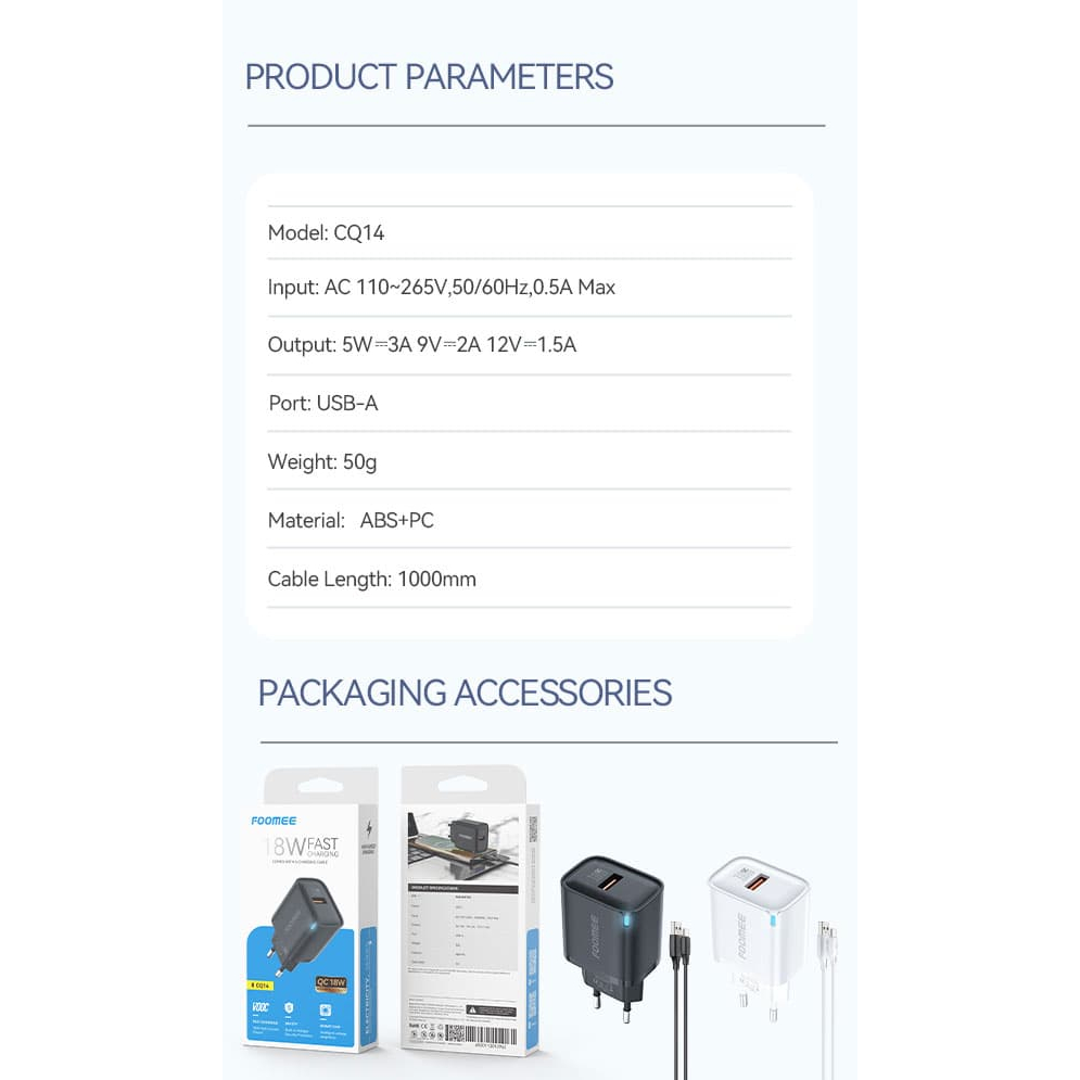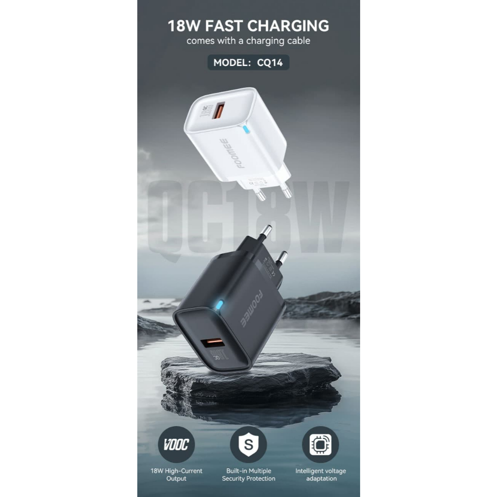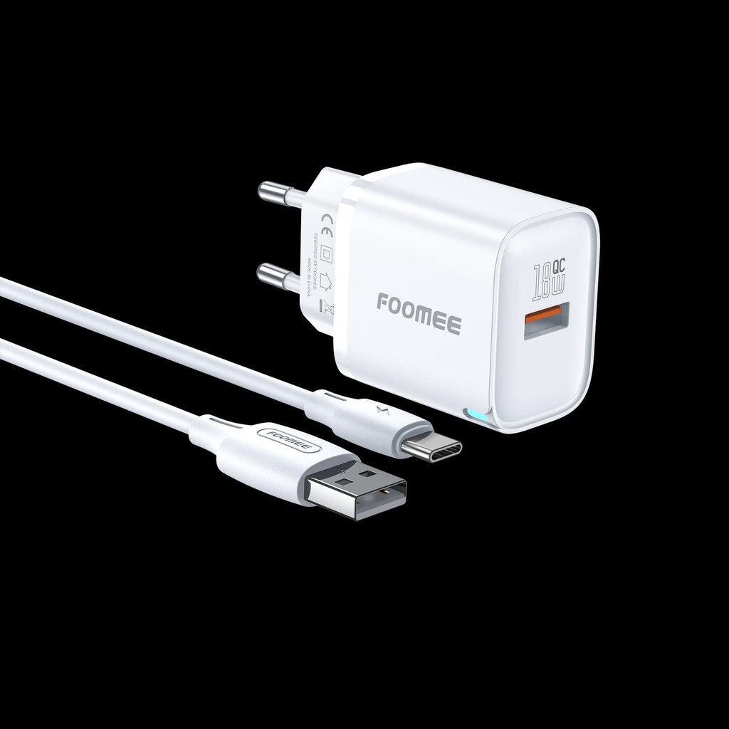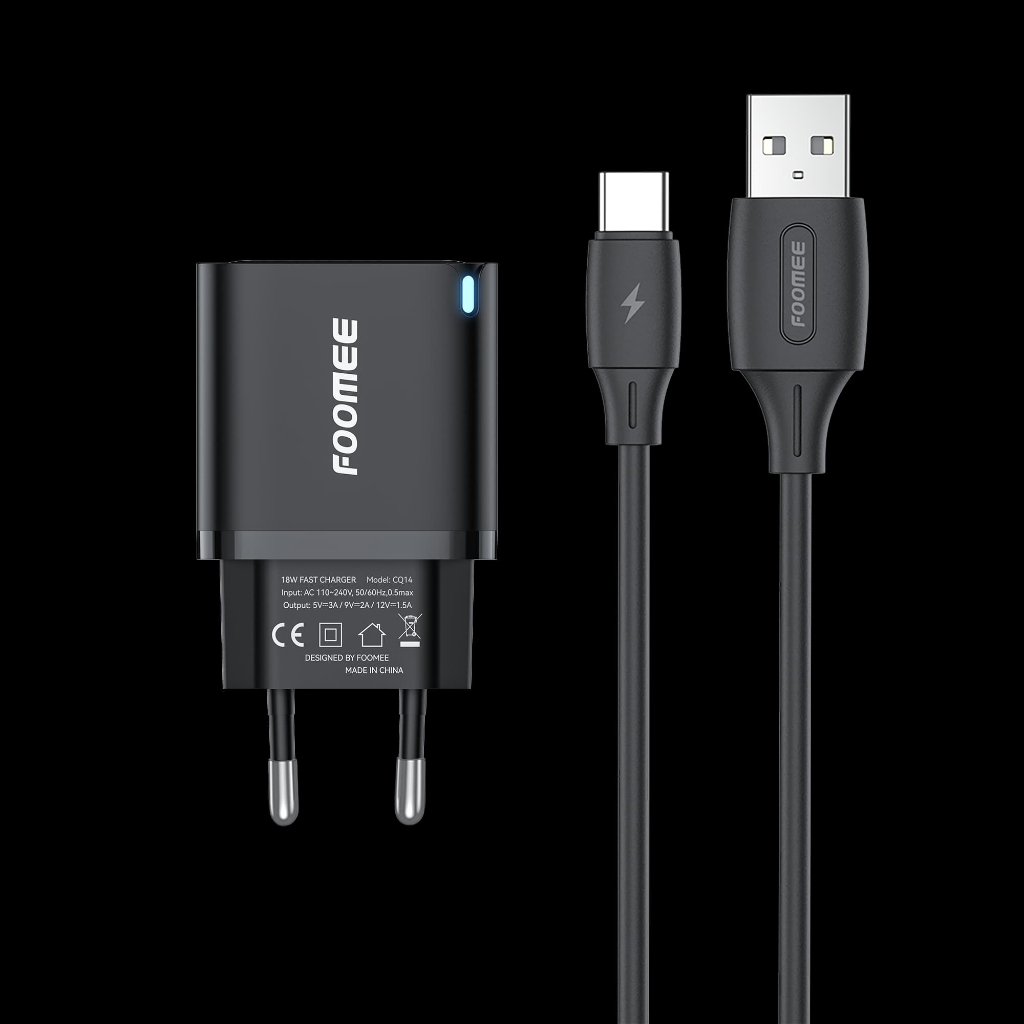 [PROMO] TERMURAH Foomee CQ14 Charger 18W + Kabel Data Type 1000mm FLASH CHARGING WITH 1M USB TO TYPEC CHARGING CABLE