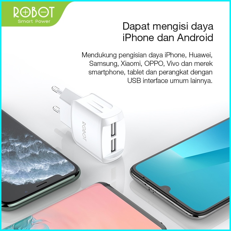 Per Pcs Robot Rt-k6 Rt-k6s Travel Charger Adaptor Batok Charger Dual Output 2.4a Original - Garansi Resmi 1 Tahun