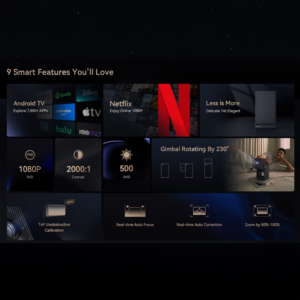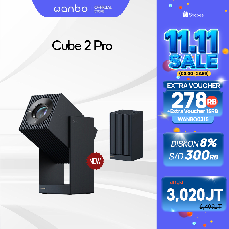 Wanbo Cube 2 Pro Projector Android TV 11 500ANSI Lumens Wanbo Proyektor FHD 1080P TOF Unobstructive Calibration