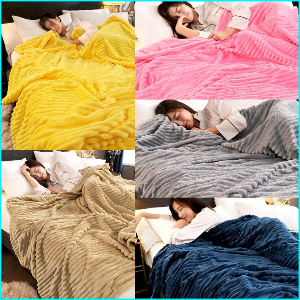 Selimut Bulu Halus Salur Dewasa Motif Polos Aesthetic Murah Terlaris Elegant 180x200 200x230 New Arrival