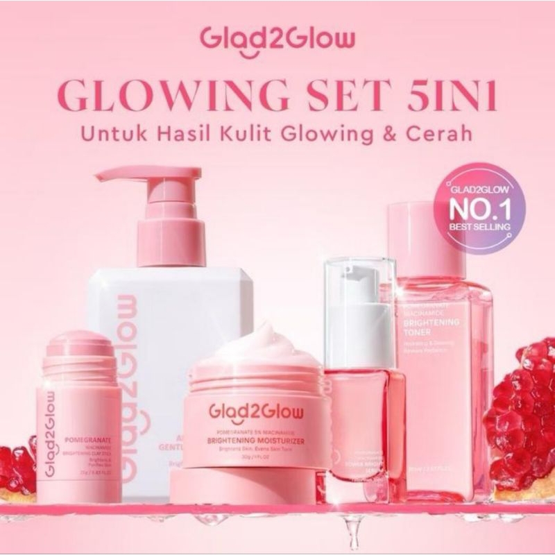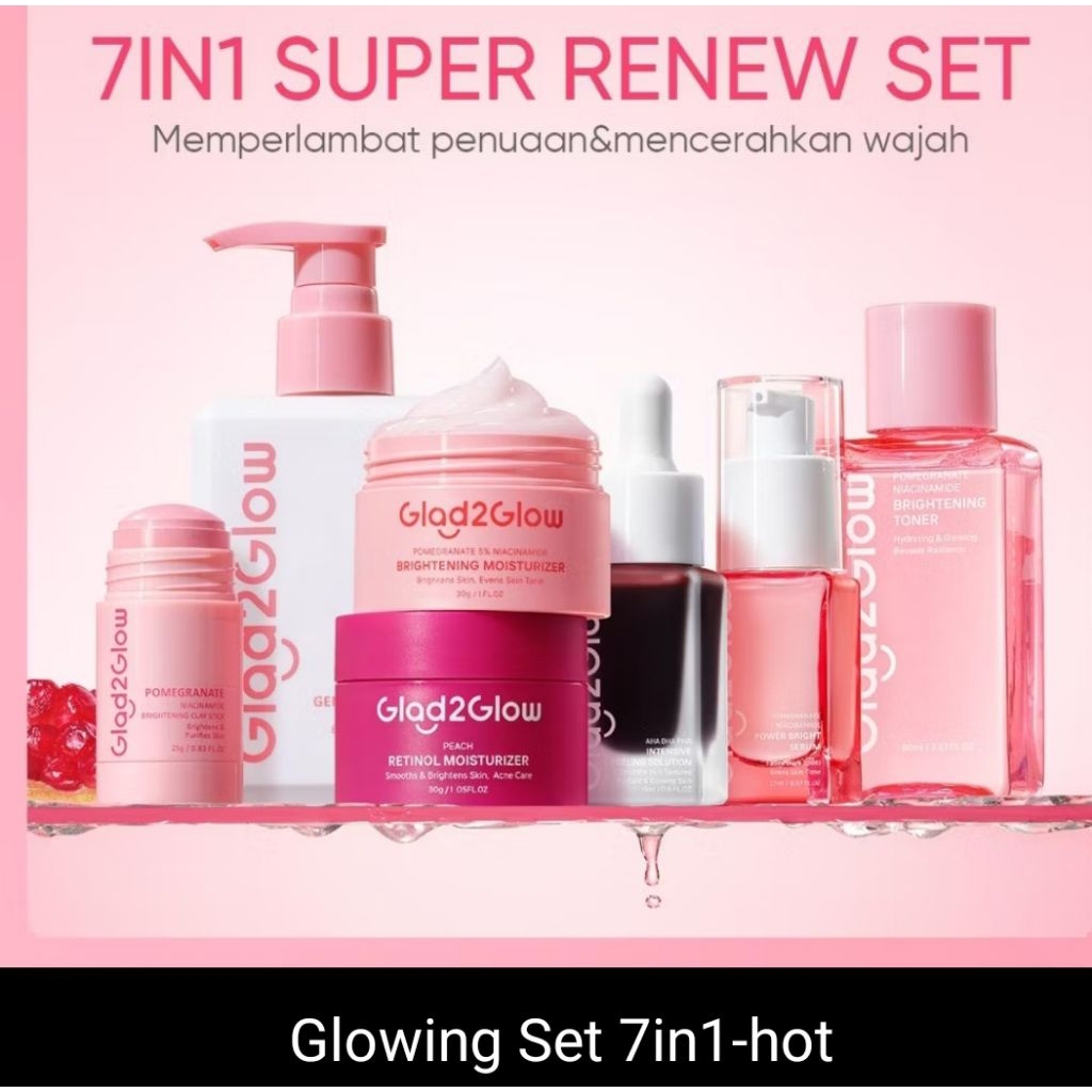 Glad2glow Renew Paket Brightening Serum-Moist-MilkCleanser-Toner-claystick-Peeling serum-moist retinol-Clenser Blueberry