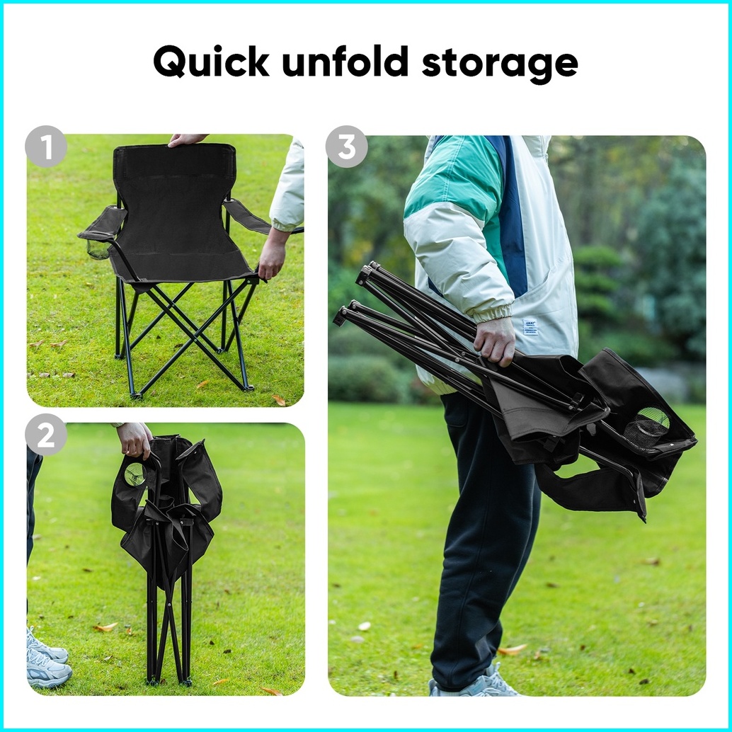 Deli Folding Chair Kursi Lipat Camping Outdoor Mancing Portable Dilengkapi Cup Holder Kapasitas 150kg E4943