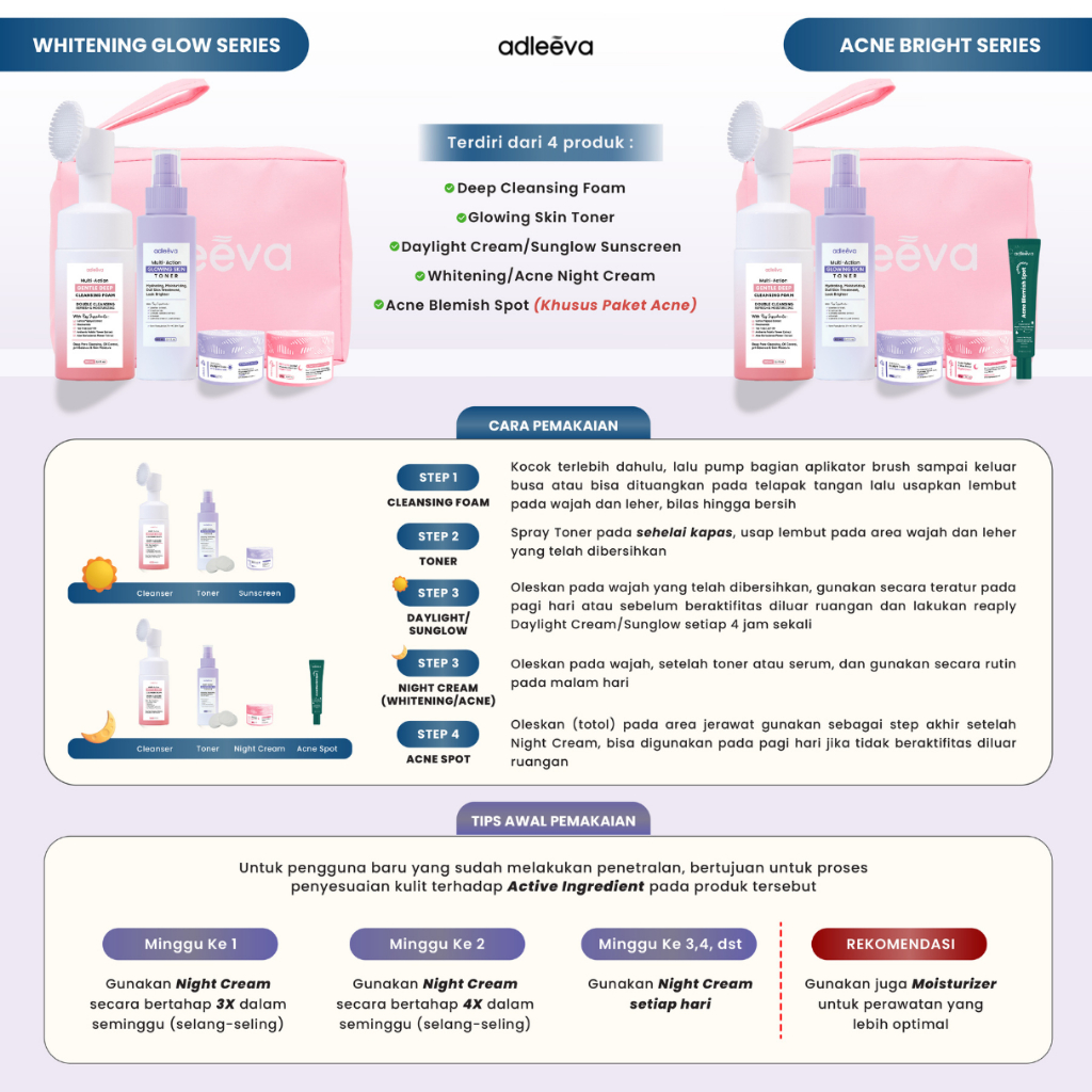 ADLEEVA - (Paket Pemula ISI 4) WHITENING Glow Booster / ACNE Bright Series Basic