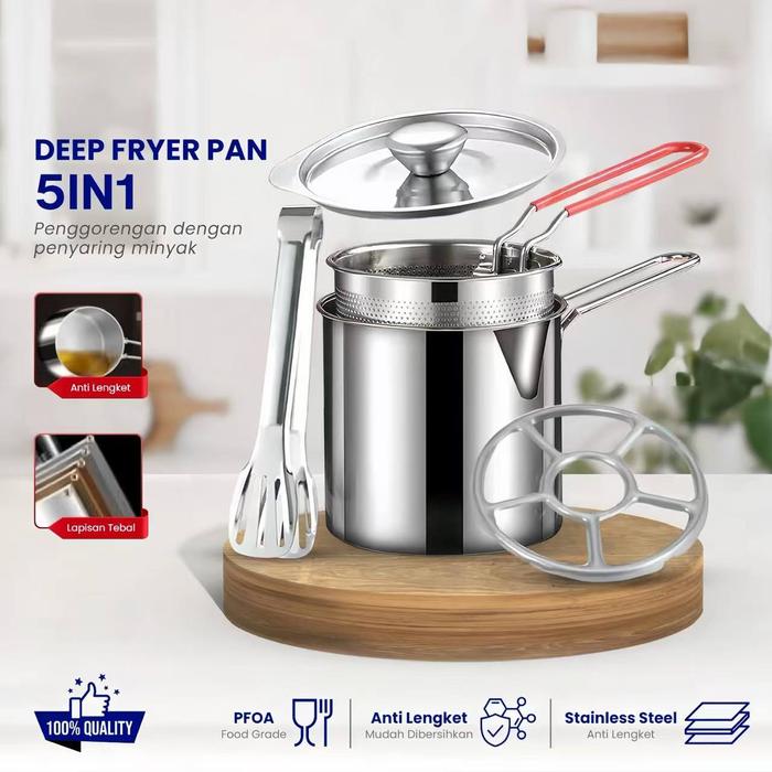 Deep Fryer 5 In1 Multifungsi Deep Fryer Panci Penggorengan Rebus Stainless Saringan Capitan Klip Set - Multi Deep Fryer